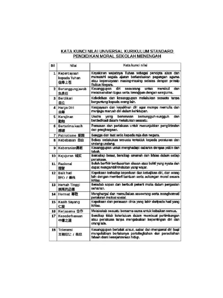 Laman Blog Pendidikan Moral 18 Nilai Universal Pendidikan Moral Kssm